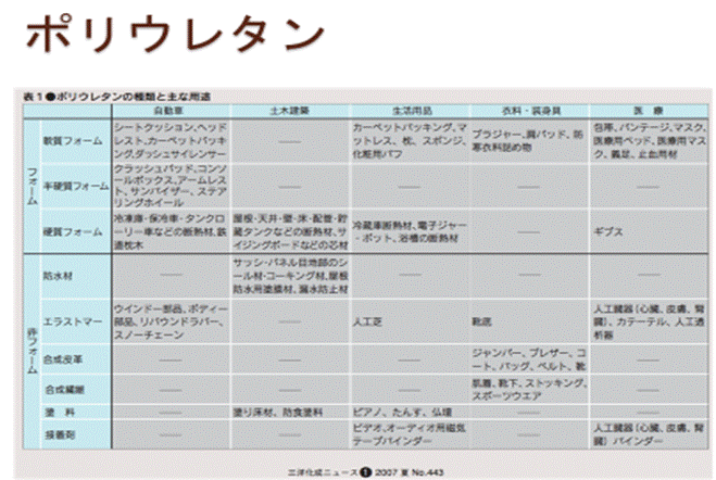 Marketplace) . 4)TDI MSDS 厚生省ホームページ・職場の安全サイト. 5)NIOSHイソシアネートの分析法・勧告書3章. イソシアネート利用の徐放技術は種々な用途に広がっている。イソシアネートは全身毒性の発症率が極めて高いアレルギー物質 (下記キーワードで検索した特許件数1993年以後)